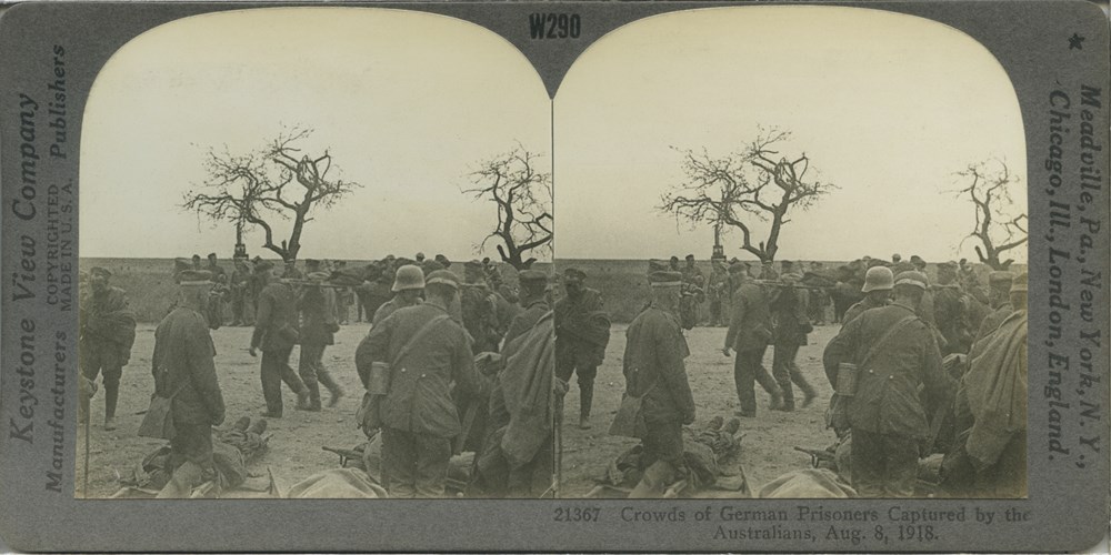 Image Id: 1502 Contributor: The Jordan/Ference Collection Theatre: Western Front Subject: Prisoners Location: Unknown Regiment: Unknown Service Arm: Unknown Battle: Unknown Date: 8 August 1918 Combatants: German Publisher: Keystone View Co Source: American Directory: 20000 Plus