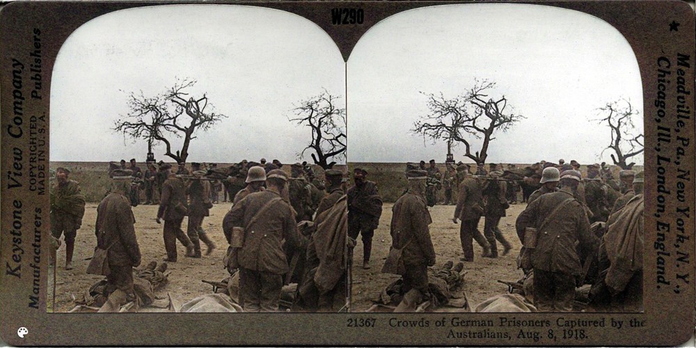 Image Id: 1502 Contributor: The Jordan/Ference Collection Theatre: Western Front Subject: Prisoners Location: Unknown Regiment: Unknown Service Arm: Unknown Battle: Unknown Date: 8 August 1918 Combatants: German Publisher: Keystone View Co Source: American Directory: 20000 Plus