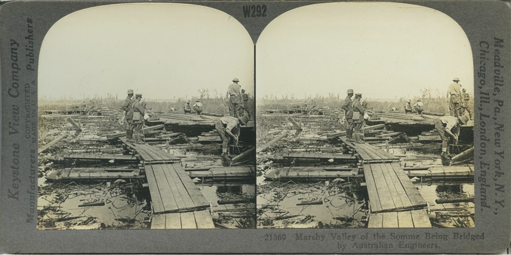 Marshy Valley of the Somme Being Bridged by Australian Engineers