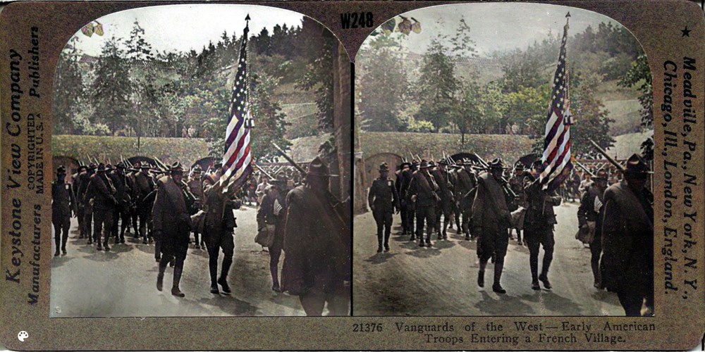 Image Id: 1511 Contributor: The Jordan/Ference Collection Theatre: Western Front Subject: Parades Location: France Regiment: Unknown Service Arm: Unknown Battle: Unknown Date: Unknown Combatants: American Publisher: Keystone View Co Source: American Directory: 20000 Plus