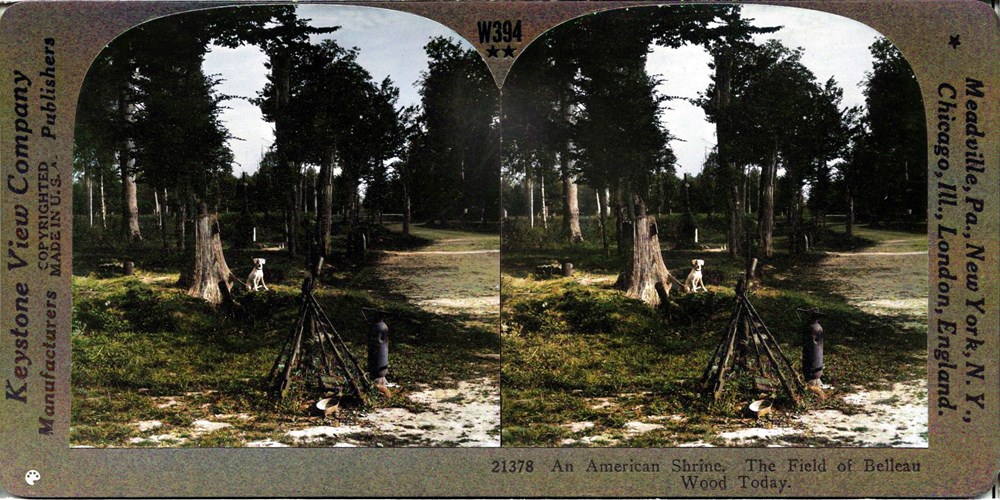 Image Id: 1513 Contributor: The Jordan/Ference Collection Theatre: Post-War Subject: Cemeteries & Monuments Location: Bellau Wood, France Regiment: Unknown Service Arm: Unknown Battle: Unknown Date: Unknown Combatants: American Publisher: Keystone View Co Source: American Directory: 20000 Plus