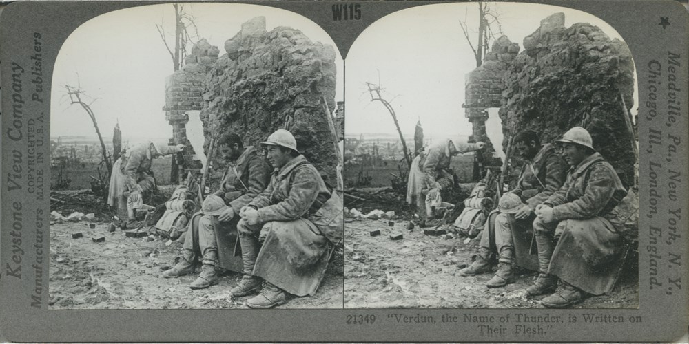Image Id: 1553 Contributor: The Jordan/Ference Collection Theatre: Western Front Subject: The Front Line Location: Verdun, France Regiment: Unknown Service Arm: Infantry Battle: 1916 Date: Unknown Combatants: French Publisher: Keystone View Co Source: American Directory: 20000 Plus