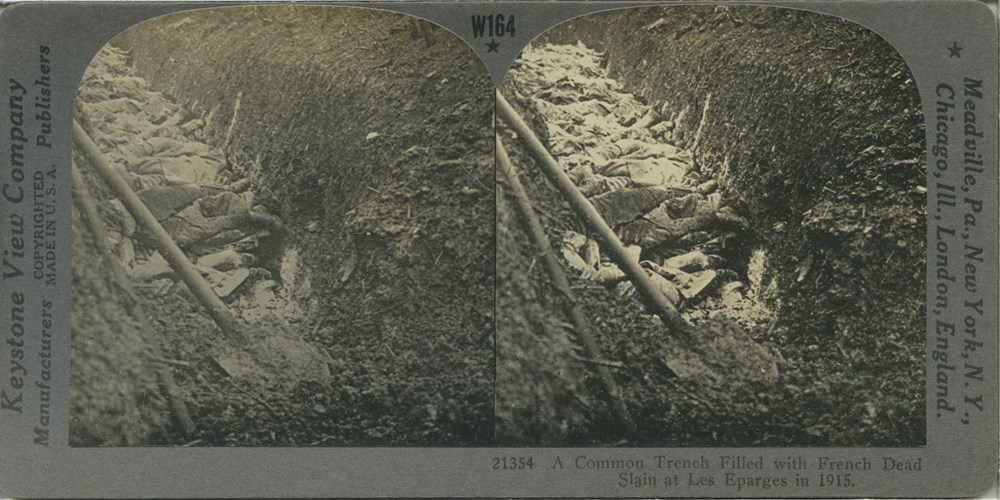 Image Id: 1558 Contributor: The Jordan/Ference Collection Theatre: Western Front Subject: Battle Aftermath Location: Les Eparges, France Regiment: Unknown Service Arm: Unknown Battle: Unknown Date: 1915 Combatants: French Publisher: Keystone View Co Source: American Directory: 20000 Plus