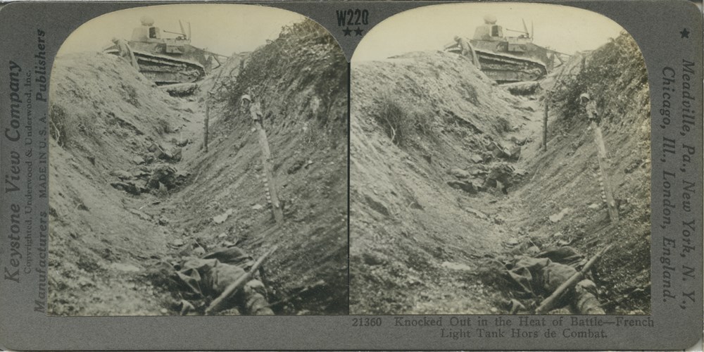 Image Id: 1564 Contributor: The Jordan/Ference Collection Theatre: Western Front Subject: Battle Aftermath Location: Unknown Regiment: Unknown Service Arm: Tanks/Armoured Cars Battle: Unknown Date: Unknown Combatants: French Publisher: Keystone View Co Source: American Directory: 20000 Plus