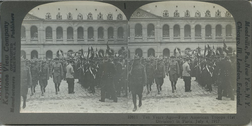 Image Id: 1568 Contributor: The Jordan/Ference Collection Theatre: Western Front Subject: Behind the Lines Location: Paris, France Regiment: 1st Division Service Arm: Infantry Battle: Unknown Date: 4 July 1917 Combatants: American Publisher: Keystone View Co Source: American Directory: 20000 Plus