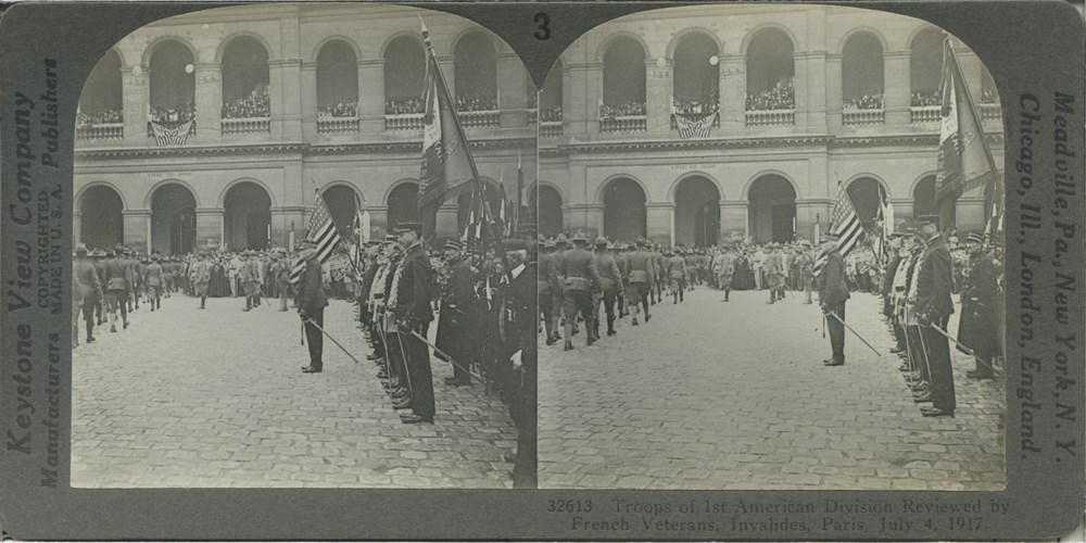 Image Id: 1570 Contributor: The Jordan/Ference Collection Theatre: Western Front Subject: Parades Location: Paris, France Regiment: 1st American Division Service Arm: Unknown Battle: Unknown Date: 4 July 1917 Combatants: American Publisher: Keystone View Co Source: American Directory: 20000 Plus