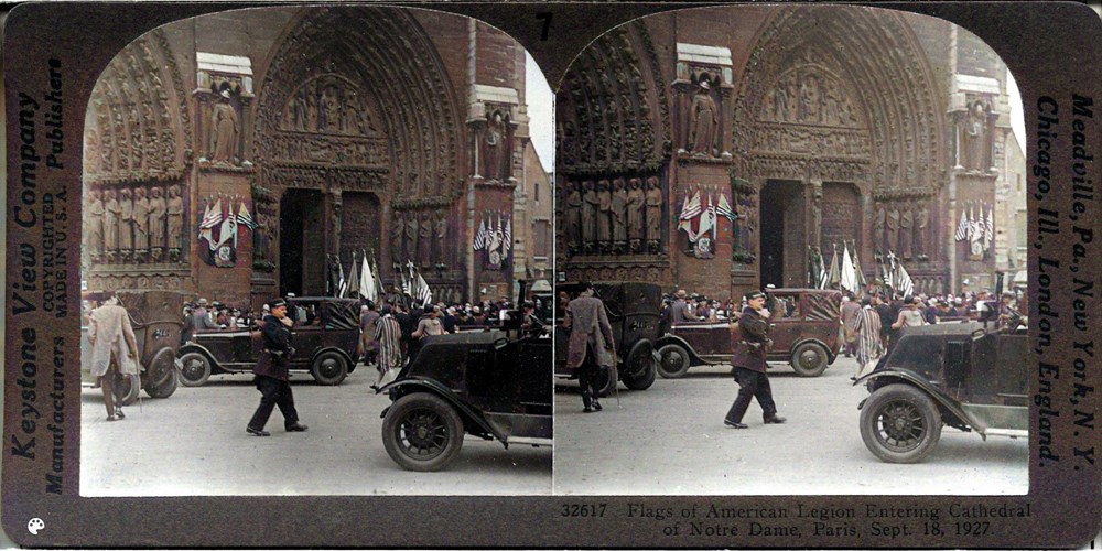 Flags of American Legion Entering Cathedral of Notre Dame, Paris, Sept. 18, 1927.
