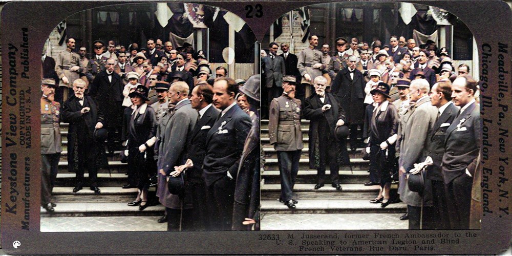 M. Jusserand, Former French Ambassador to the U. S., Speaking to American Legion and Blind French Veterans, Rue Daru, Paris.