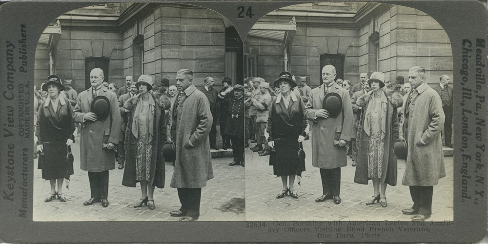 Gen. Pershing with American Legion and Auxiliary Officers Visiting Blind French Veterans, Rue Daru, Paris.