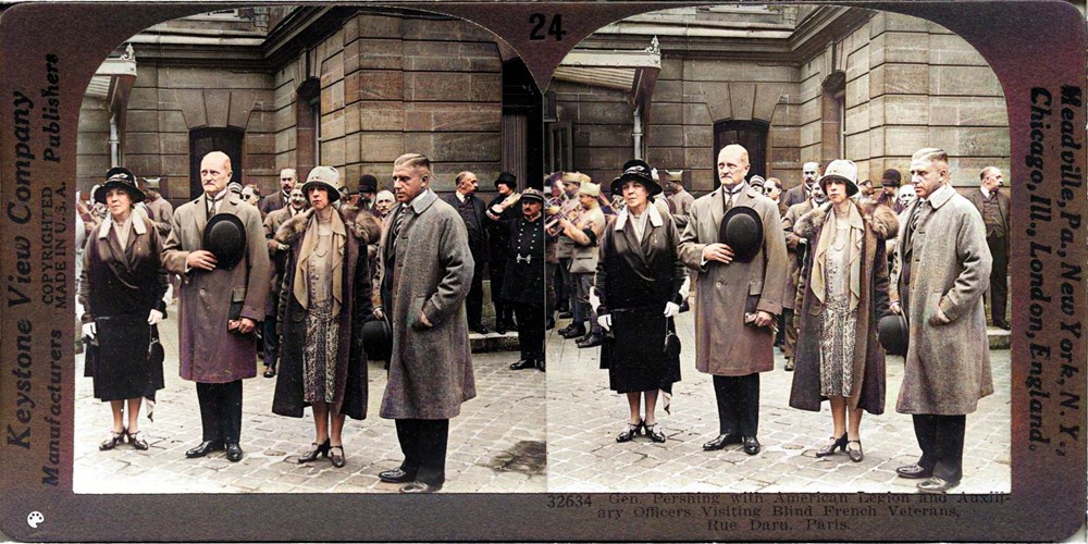 Gen. Pershing with American Legion and Auxiliary Officers Visiting Blind French Veterans, Rue Daru, Paris.