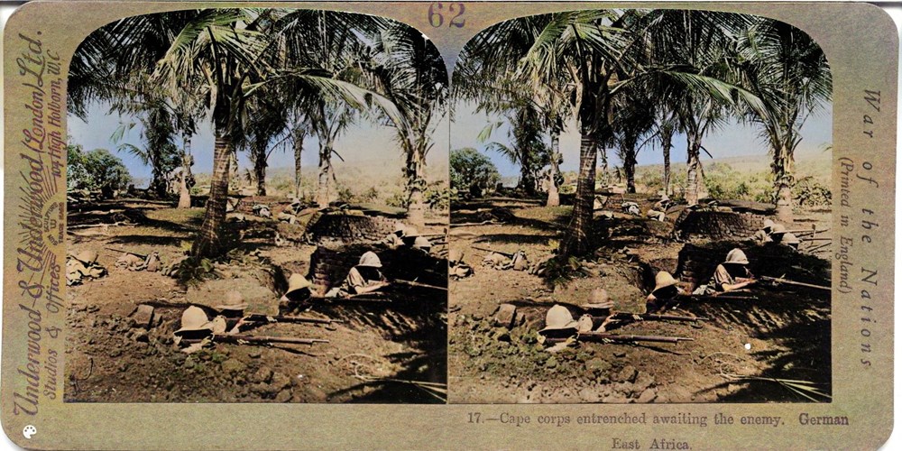 Image Id: 160 Contributor: The Jordan/Ference Collection Theatre: Africa Subject: The Front Line Location: East Africa Regiment: Cape Corps Service Arm: Infantry Battle: Unknown Date: Unknown Combatants: South African Publisher: Underwood & Underwood Source: British Directory: WOTND