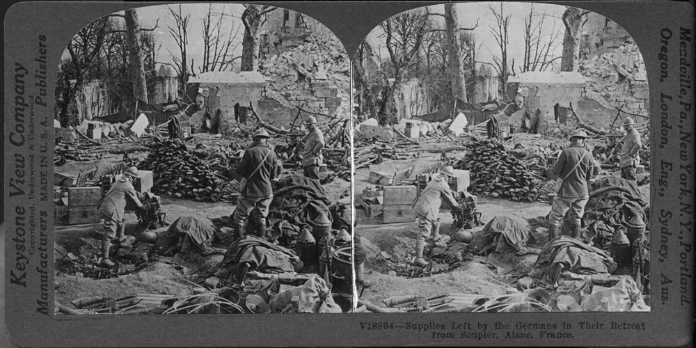 Image Id: 1629 Contributor: The Jordan/Ference Collection Theatre: Western Front Subject: War Booty Location: Soupier, Aisne, France Regiment: Unknown Service Arm: Infantry Battle: Unknown Date: Unknown Combatants: French Publisher: Keystone View Co Source: American Directory: 18800-18899