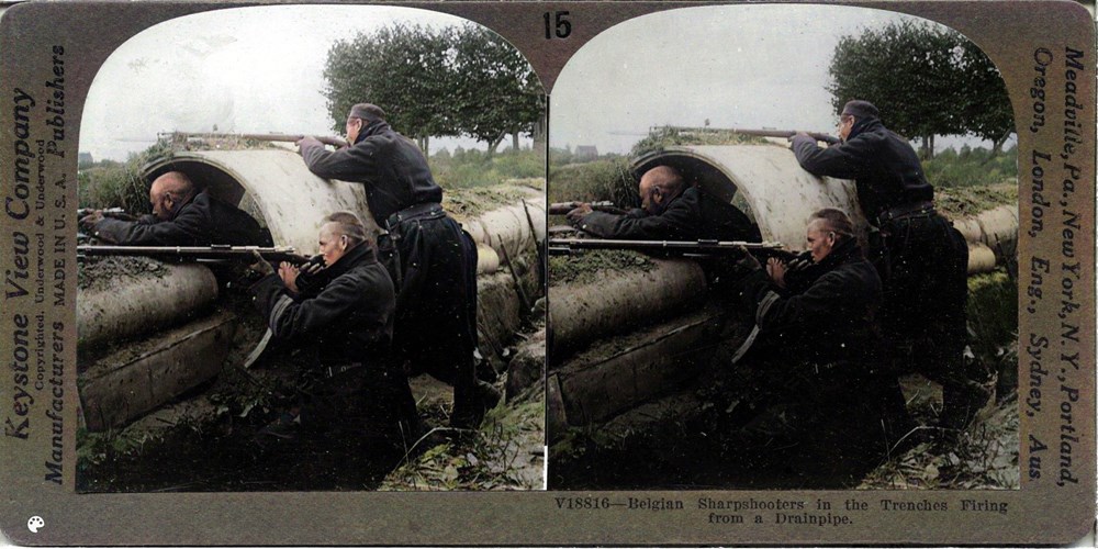Belgian Sharpshooters in the Trenches Firing from a Drainpipe