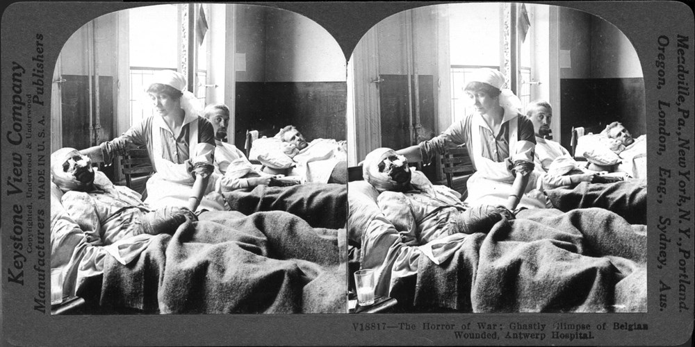 Image Id: 1646 Contributor: The Jordan/Ference Collection Theatre: Western Front Subject: Medical Scenes Location: Antwerp Hospital, Belgium Regiment: Unknown Service Arm: Medical Services Battle: Unknown Date: Unknown Combatants: Belgian Publisher: Keystone View Co Source: American Directory: 18800-18899