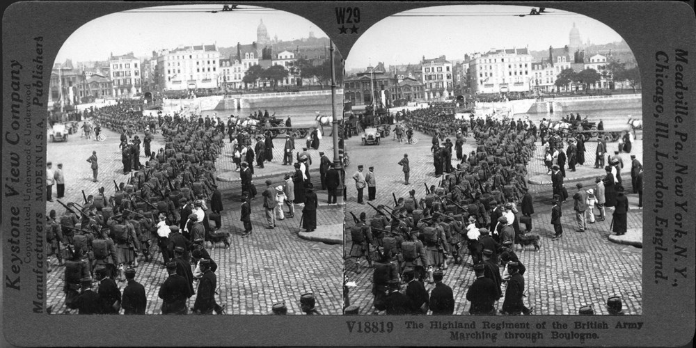 Image Id: 1648 Contributor: The Jordan/Ference Collection Theatre: Western Front Subject: Behind the Lines Location: Boulogne, Cote d'Opale, France Regiment: Highland Service Arm: Infantry Battle: Unknown Date: Unknown Combatants: British Publisher: Keystone View Co Source: American Directory: 18800-18899