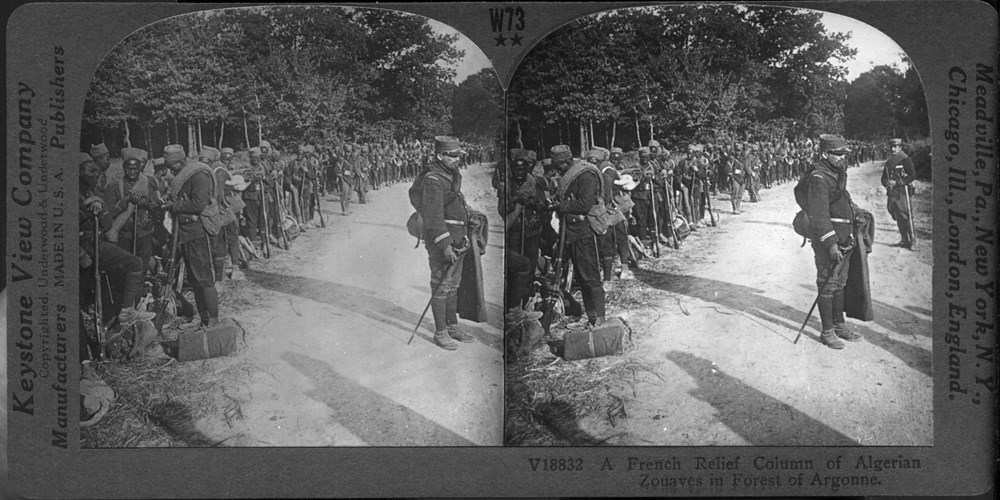 Image Id: 1661 Contributor: The Jordan/Ference Collection Theatre: Western Front Subject: Behind the Lines Location: Forest of Argonne, Grand Est, France Regiment: Unknown Service Arm: Infantry Battle: Unknown Date: 1918 Combatants: Algerian Publisher: Keystone View Co Source: American Directory: 18800-18899