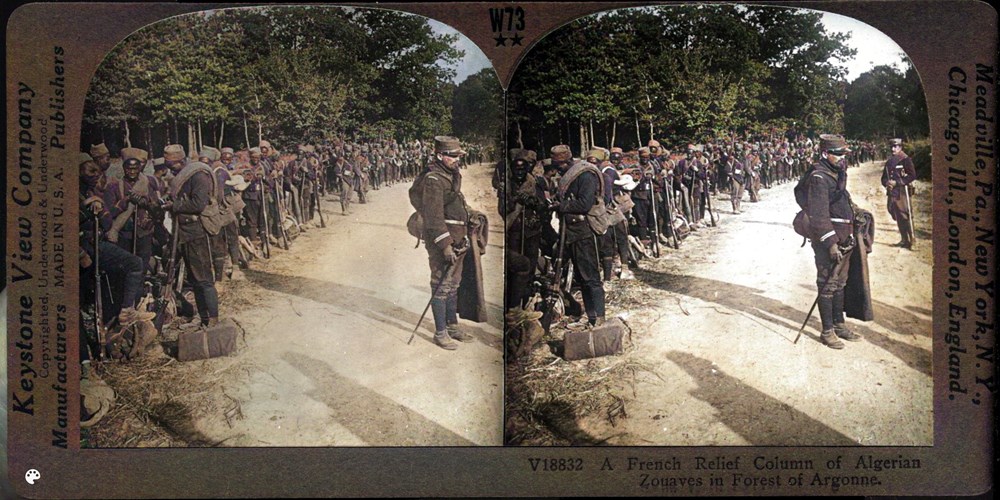 Image Id: 1661 Contributor: The Jordan/Ference Collection Theatre: Western Front Subject: Behind the Lines Location: Forest of Argonne, Grand Est, France Regiment: Unknown Service Arm: Infantry Battle: Unknown Date: 1918 Combatants: Algerian Publisher: Keystone View Co Source: American Directory: 18800-18899