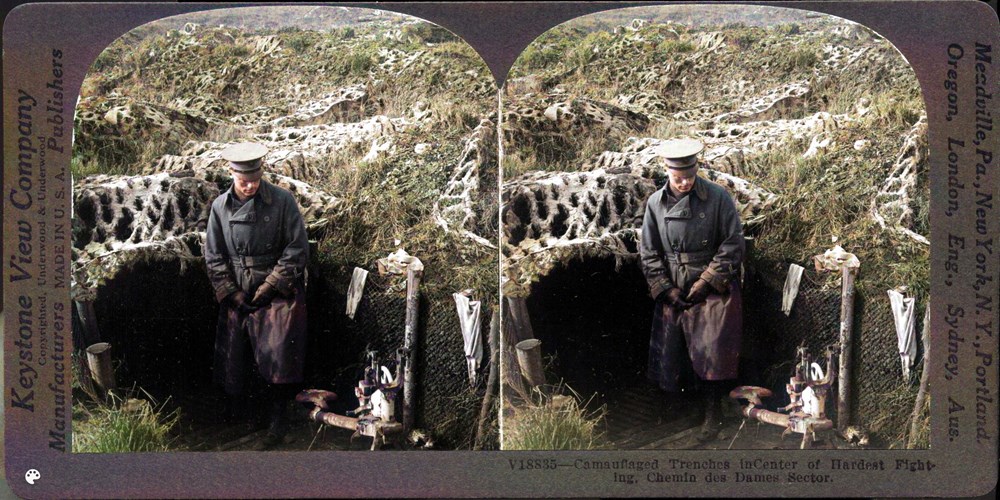 Image Id: 1664 Contributor: The Jordan/Ference Collection Theatre: Western Front Subject: The Front Line Location: Chemins des Dames, France Regiment: Unknown Service Arm: Infantry Battle: Unknown Date: Unknown Combatants: French Publisher: Keystone View Co Source: American Directory: 18800-18899
