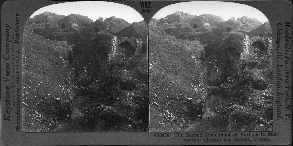 Image Id: 1665 Contributor: The Jordan/Ference Collection Theatre: Western Front Subject: Battle Aftermath Location: Fort de Malmaison, Chemins des Dames, France Regiment: Unknown Service Arm: Unknown Battle: Unknown Date: Unknown Combatants: Unknown Publisher: Keystone View Co Source: American Directory: 18800-18899
