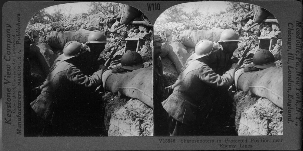 Image Id: 1675 Contributor: The Jordan/Ference Collection Theatre: Western Front Subject: The Front Line Location: France Regiment: Unknown Service Arm: Infantry Battle: Unknown Date: Unknown Combatants: French Publisher: Keystone View Co Source: American Directory: 18800-18899