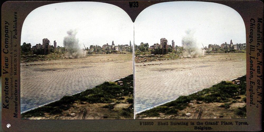 Shell Bursting in the Grand Place, Ypres, Belgium