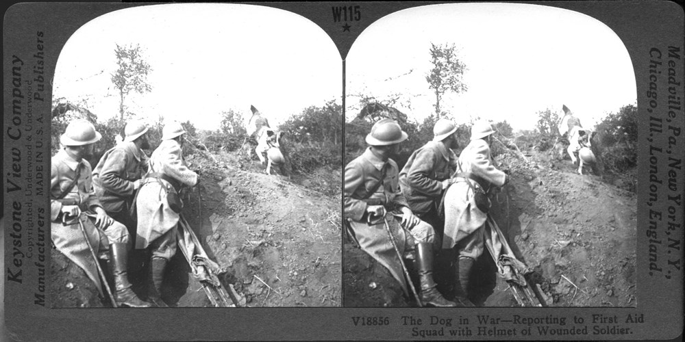 Shows dog being used to find wounded in No Mans LandImage Id: 1685 Contributor: The Jordan/Ference Collection Theatre: Western Front Subject: Medical Scenes Location: France Regiment: Unknown Service Arm: Medical Services Battle: Unknown Date: Unknown Combatants: French Publisher: Keystone View Co Source: American Directory: 18800-18899