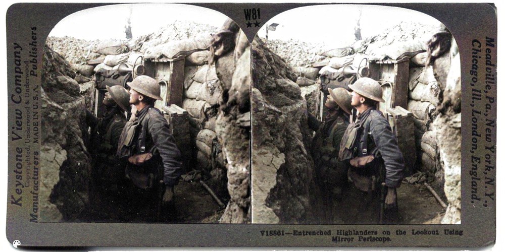 Image Id: 1690 Contributor: The Jordan/Ference Collection Theatre: Western Front Subject: The Front Line Location: France Regiment: Highlanders Service Arm: Infantry Battle: Unknown Date: Unknown Combatants: British Publisher: Keystone View Co Source: American Directory: 18800-18899