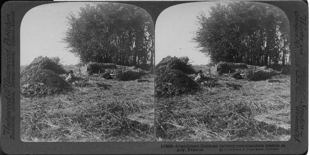 Image Id: 1710 Contributor: The Jordan/Ference Collection Theatre: Western Front Subject: The Front Line Location: Acy, France Regiment: Unknown Service Arm: Unknown Battle: Unknown Date: Unknown Combatants: German Publisher: Underwood & Underwood (American) Source: American Directory: 0-11900