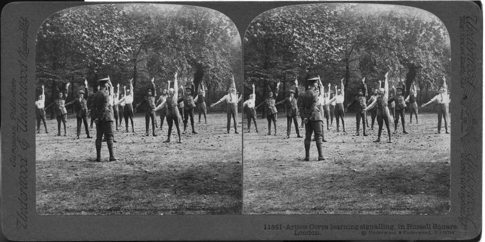 Image Id: 1729 Contributor: The Jordan/Ference Collection Theatre: Home Front Subject: Training Location: Russell Square, London Regiment: Artist's Rifles Service Arm: Infantry Battle: Unknown Date: Unknown Combatants: British Publisher: Underwood & Underwood (American) Source: American Directory: 0-11900