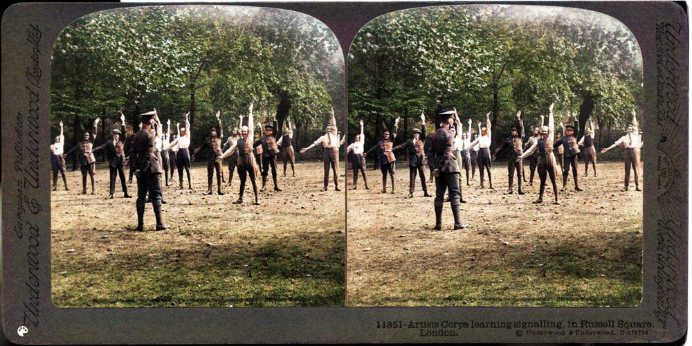 Artists Corps learning signalling. In Russell Square, London