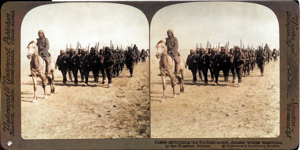 Mobilizing the Turkish army, Asiatic troops marching to the Russian border