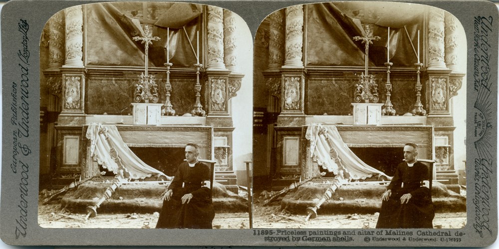 Image Id: 1766 Contributor: The Jordan/Ference Collection Theatre: Western Front Subject: Battle Aftermath Location: Malines Cathedral, Belgium Regiment: Unknown Service Arm: Unknown Battle: Unknown Date: Unknown Combatants: Unknown Publisher: Underwood & Underwood (American) Source: American Directory: 0-11900