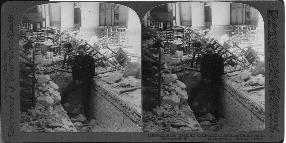 Image Id: 1767 Contributor: The Jordan/Ference Collection Theatre: Western Front Subject: Battle Aftermath Location: Malines Cathedral, Belgium Regiment: Unknown Service Arm: Unknown Battle: Unknown Date: Unknown Combatants: Unknown Publisher: Underwood & Underwood (American) Source: American Directory: 0-11900