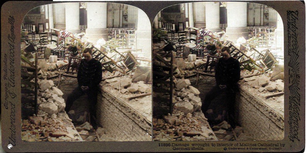 Image Id: 1767 Contributor: The Jordan/Ference Collection Theatre: Western Front Subject: Battle Aftermath Location: Malines Cathedral, Belgium Regiment: Unknown Service Arm: Unknown Battle: Unknown Date: Unknown Combatants: Unknown Publisher: Underwood & Underwood (American) Source: American Directory: 0-11900