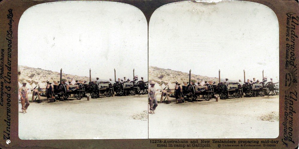 Australians and New Zealanders preparing mid-day meal in camp at Gallipoli