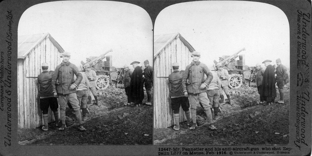 Image Id: 1804 Contributor: The Jordan/Ference Collection Theatre: Western Front Subject: Zeppelin & Bomber Raids Location: Meuse, France Regiment: Unknown Service Arm: Anti-Aircraft Artillery Battle: Unknown Date: February 1916 Combatants: French Publisher: Underwood & Underwood (American) Source: American Directory: 12248-13068