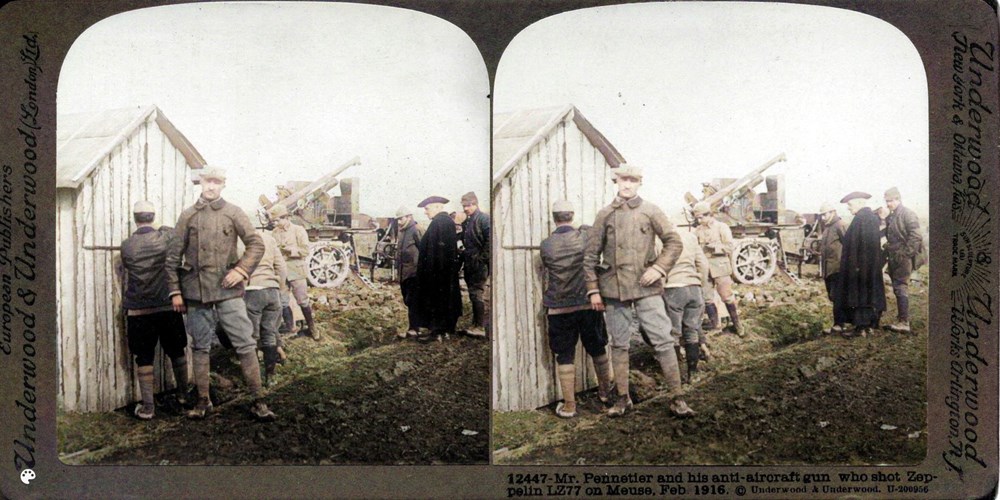 Image Id: 1804 Contributor: The Jordan/Ference Collection Theatre: Western Front Subject: Zeppelin & Bomber Raids Location: Meuse, France Regiment: Unknown Service Arm: Anti-Aircraft Artillery Battle: Unknown Date: February 1916 Combatants: French Publisher: Underwood & Underwood (American) Source: American Directory: 12248-13068