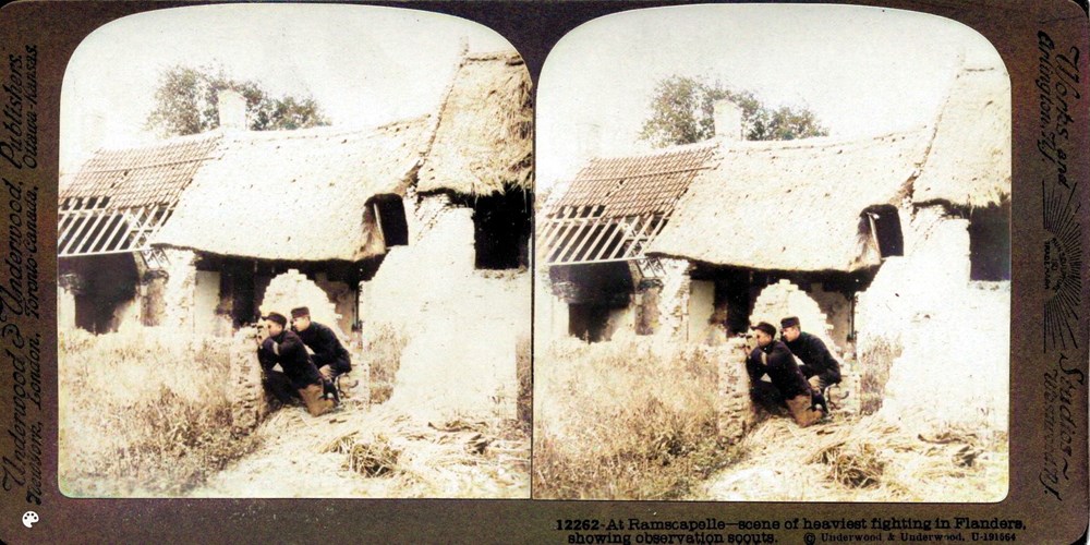 Image Id: 1832 Contributor: The Jordan/Ference Collection Theatre: Western Front Subject: The Front Line Location: Ramscapelle, Belgium Regiment: Unknown Service Arm: Unknown Battle: Unknown Date: Unknown Combatants: Belgian Publisher: Underwood & Underwood (American) Source: American Directory: 12248-13068