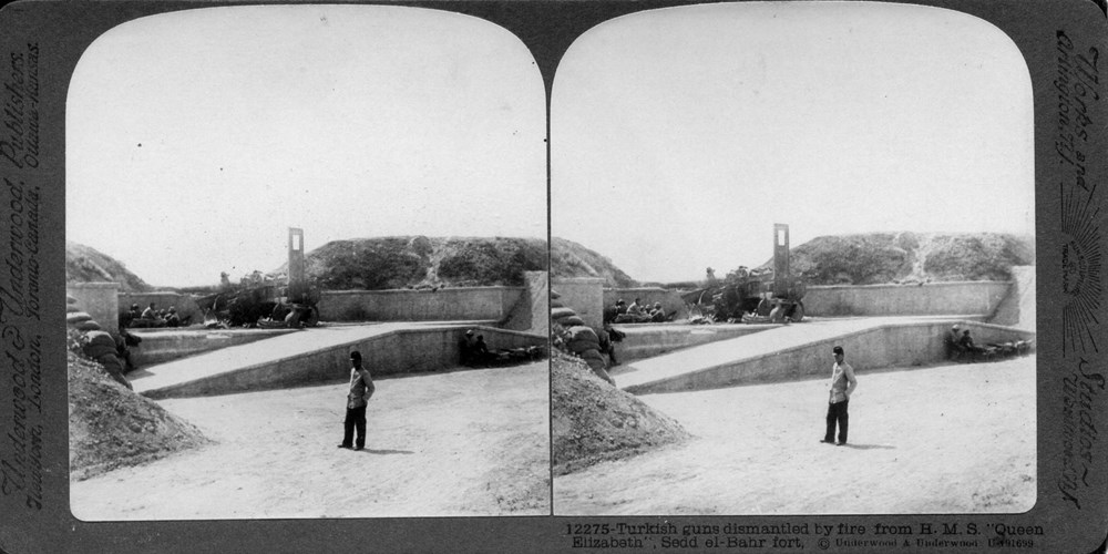 Turkish guns dismantled by fire from H.M.S. "Queen Elizabeth", Sedd-el-Bahr fort