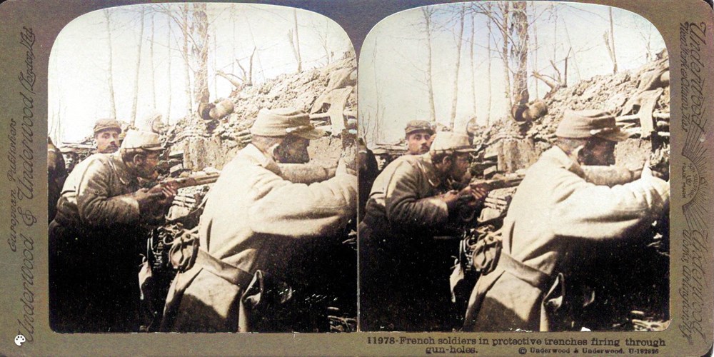 Image Id: 1851 Contributor: The Jordan/Ference Collection Theatre: Western Front Subject: The Front Line Location: France Regiment: Unknown Service Arm: Infantry Battle: Unknown Date: Unknown Combatants: French Publisher: Underwood & Underwood (American) Source: American Directory: 11901-12168