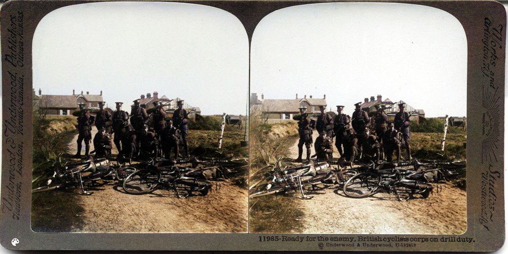 Image Id: 1853 Contributor: The Jordan/Ference Collection Theatre: Western Front Subject: Behind the Lines Location: France Regiment: Unknown Service Arm: Cycle Corps Battle: Unknown Date: Unknown Combatants: British Publisher: Underwood & Underwood (American) Source: American Directory: 11901-12168