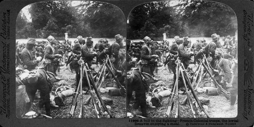 Image Id: 1868 Contributor: The Jordan/Ference Collection Theatre: Western Front Subject: Behind the Lines Location: France Regiment: Unknown Service Arm: Infantry Battle: Unknown Date: Unknown Combatants: French Colonial Publisher: Underwood & Underwood (American) Source: American Directory: 11901-12168