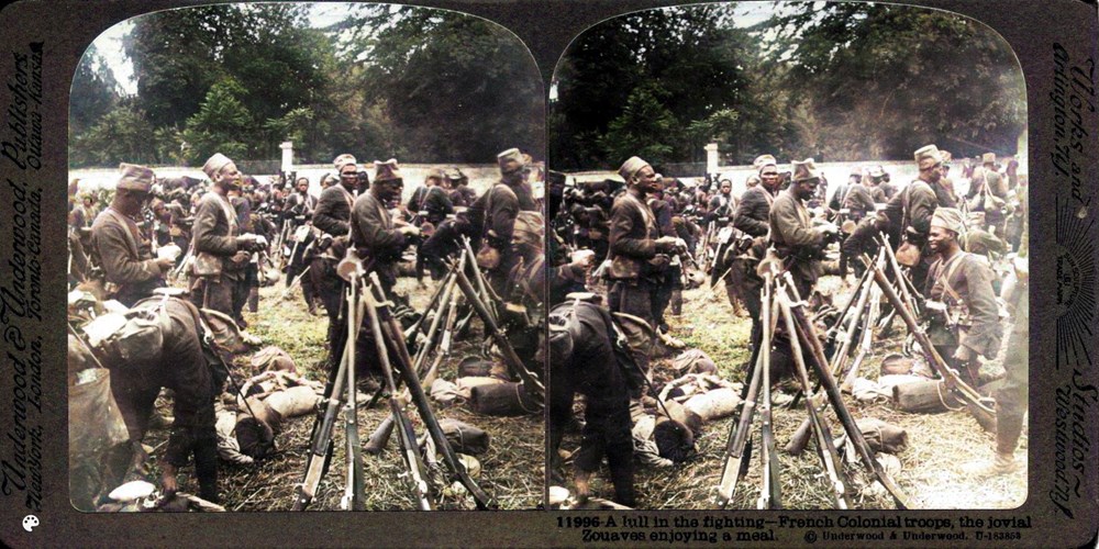 Image Id: 1868 Contributor: The Jordan/Ference Collection Theatre: Western Front Subject: Behind the Lines Location: France Regiment: Unknown Service Arm: Infantry Battle: Unknown Date: Unknown Combatants: French Colonial Publisher: Underwood & Underwood (American) Source: American Directory: 11901-12168