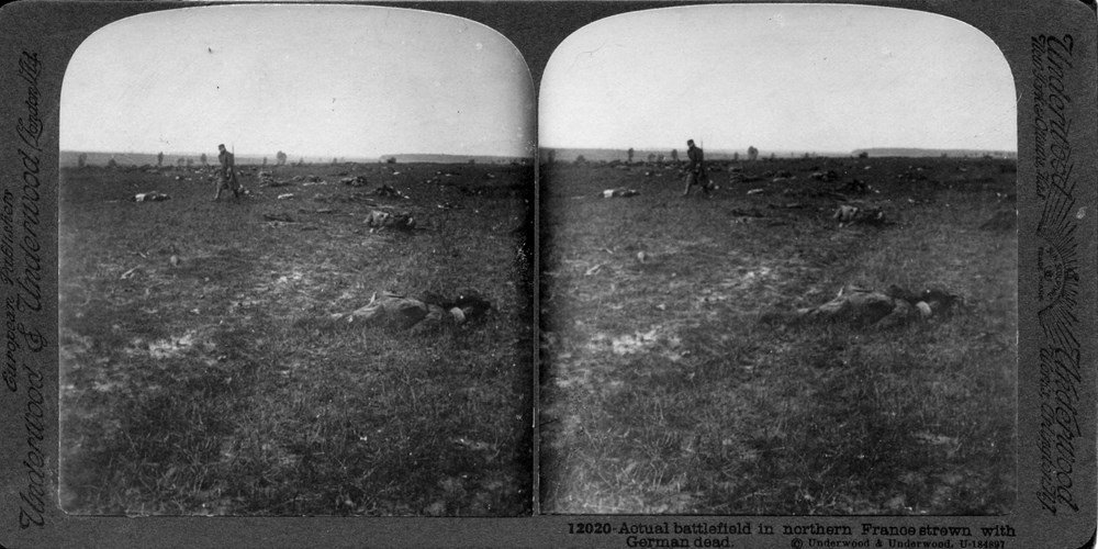 Actual battlefield in northern France strewn with German dead