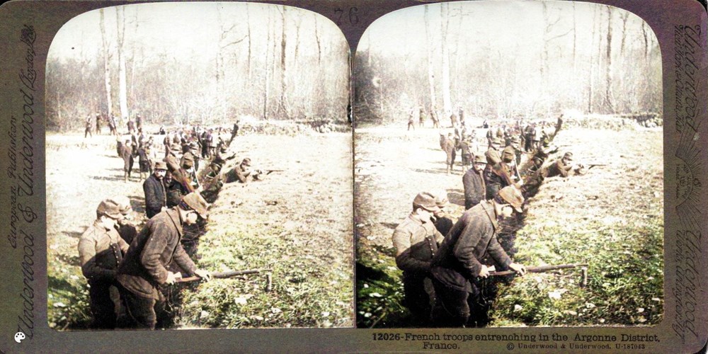 Image Id: 1879 Contributor: The Jordan/Ference Collection Theatre: Western Front Subject: The Front Line Location: Argonne, France Regiment: Unknown Service Arm: Infantry Battle: Unknown Date: Unknown Combatants: French Publisher: Underwood & Underwood (American) Source: American Directory: 11901-12168