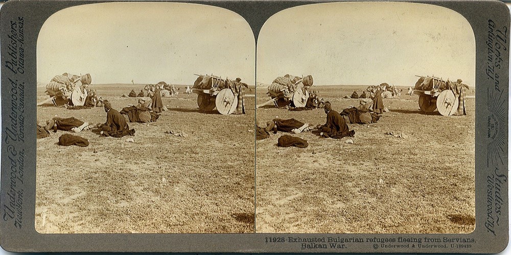 Exhausted Bulgarian refugees fleeing from Servians (sic), Balkan War