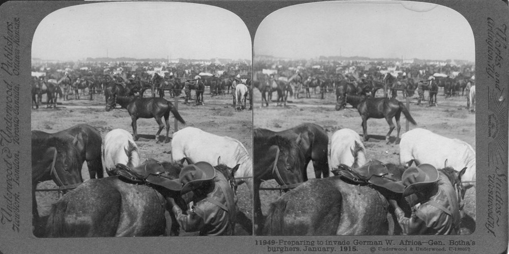 Image Id: 1913 Contributor: The Jordan/Ference Collection Theatre: Africa Subject: Behind the Lines Location: Africa Regiment: Unknown Service Arm: Cavalry Battle: Unknown Date: January 1915 Combatants: South African Publisher: Underwood & Underwood (American) Source: American Directory: 11901-12168