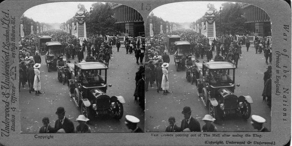 Vast Crowds pouring out of the Mall after seeing the King, London, July 19, 1919