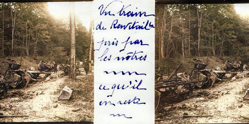 "Un train de ravitaillement pris par les notres - ce qu'il en reste" - A supply convoy taken by our lot - what's left of it.