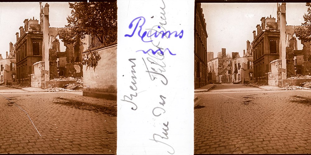 Extra black ink caption reads "Rue des Filles-Dieu" (49.253876, 4.038059)Image Id: 1944 Contributor: The Jordan/Ference Collection Theatre: Western Front Subject: Battle Aftermath Location: Reims, France Regiment: Unknown Service Arm: Unknown Battle: Unknown Date: 1914 Combatants: Unknown Publisher: French Photojournalist 1914 Source: French Directory: Set of 43 Webres